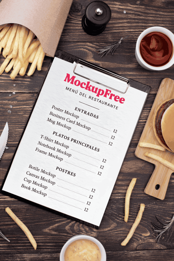 • Este mockup es perfecto si quieres presentar el diseño de una carta de restaurante con un toque sabroso y realista.…